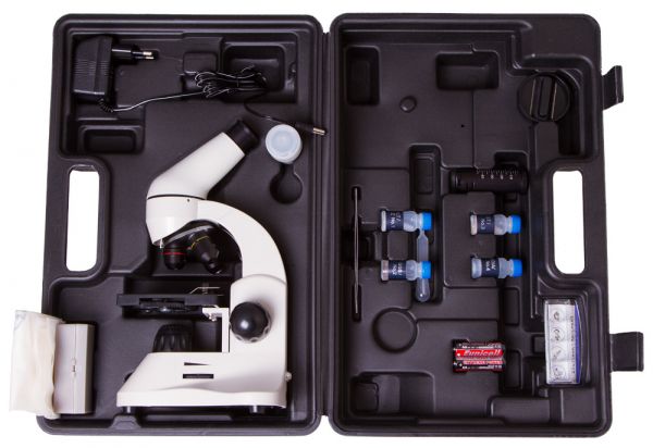 Микроскоп комплектуется набором начинающего биолога – это особенно ценно для новичков, которые только начинают знакомство с микромиром.