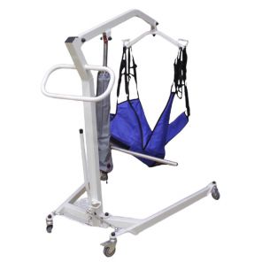 Для того, чтобы сделать подъем больного при помощи электроподъемника более комфортным, вы можете приобрести специальные перевязи. Они используются при перемещении инвалидов и пожилых людей в комплекте с подъемником определенной модели. Такие перевязи изготавливаются из нейлона.