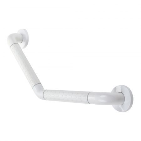 Диаметр поручня составляет 35 мм, его длина – 300*300 мм. Изделие отличается простотой в монтаже, за ним просто ухаживать. Модель – универсальная, подойдет людям разного возраста и пола.