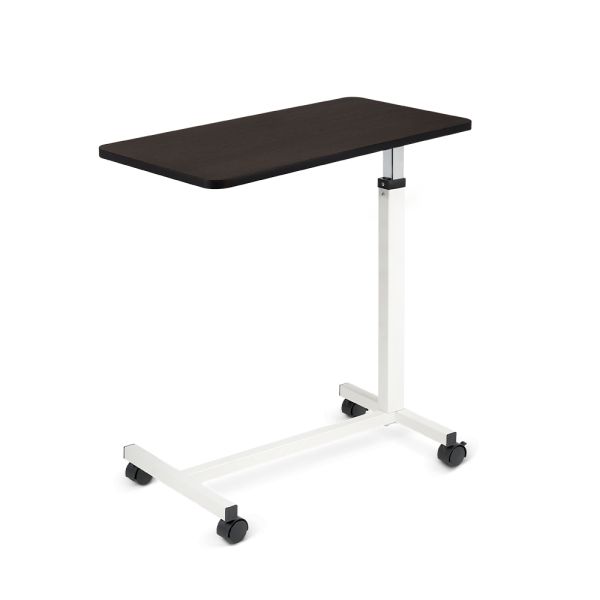 Конструкция столика подходит для любой медицинской или обычной кровати. Нижняя часть основания заходит под кровать, а верхняя часть со столешницей располагается над лежащим на кровати. Столик регулируется по высоте – индивидуально для каждого пользователя. Столешница допускает влажную дезинфекцию и местный нагрев.
