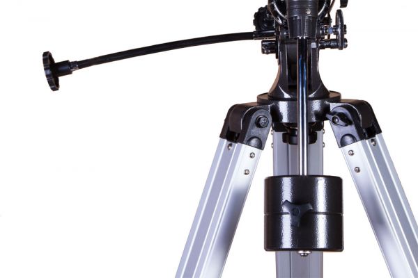 Оптическая труба управляется при помощи экваториальной монтировки. Она устроена несколько сложнее, чем азимутальная, зато позволяет точно и без усилий вести космические объекты по небосклону. На освоение потребуется время, зато качество и удобство наблюдений вас не разочаруют. Монтировка крепится на алюминиевой треноге, высоту которой можно адаптировать под рост наблюдателя. На треногу устанавливается лоток для аксессуаров.