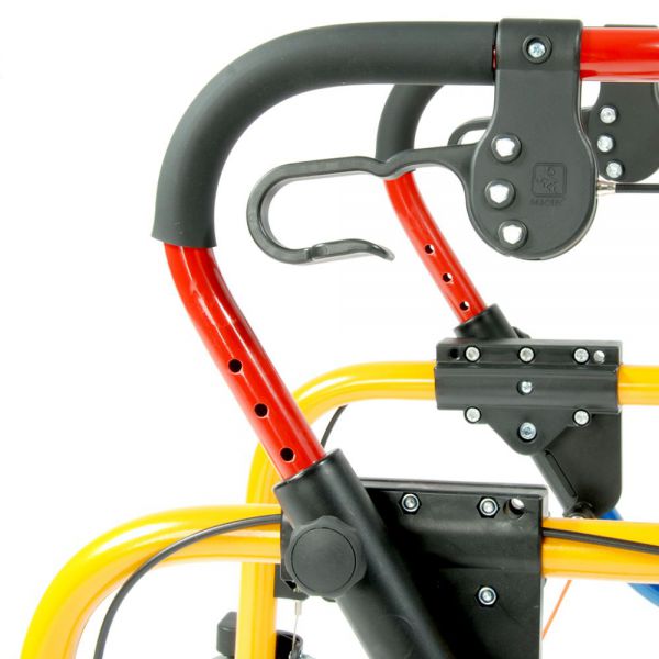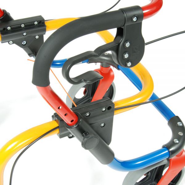 Каждая из опор оснащена колесами. Два передних — самоориентирующиеся. Ходунки имеют ручной тормоз с фиксацией, что позволяет остановить устройство и закрепить его в нужном положении.