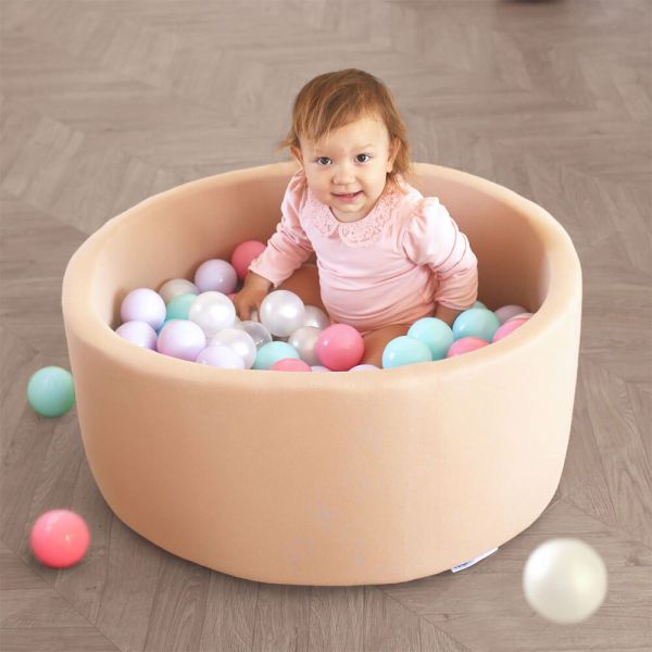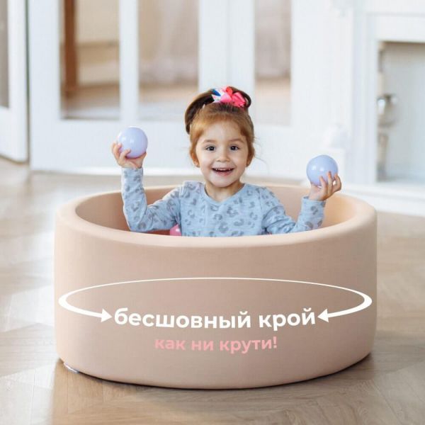 Это достаточно стильный элемент интерьера, который не займет много места в помещении. Высота бортиков составляет 33 см, что позволяет детям беспрепятственно залезать в бассейн, отдыхать и играть с шариками, развивая при этом ловкость и моторику рук.