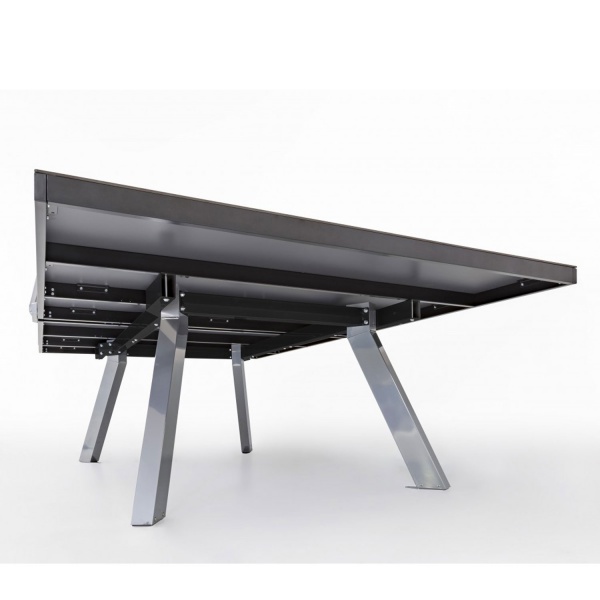 Надежный всепогодный стол с привлекательным дизайном. Игровая поверхность изготовлена из 8 мм меламиновой плиты для лучшего отскока шарика. При необходимости стол может быть привинчен к полу.